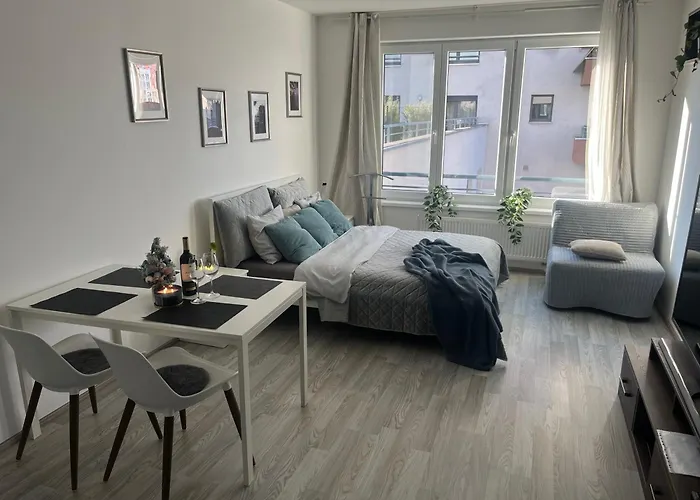 Die Apartments bietet Ihnen eine voll ausgestattete Küche mit einer Kaffee-/Teemaschine, einem Kühlschrank und Küchenutensilien. Die nächstgelegene U-Bahn-Station Vltavská ist 10 Minuten Fußweg von zu erreichen.